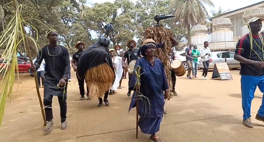Celle-ci est partie du pont 8 novembre jusqu’au CNT, où plusieurs personnes vêtues en noir et munies d’objets d’arts Baga ont rencontré le maire de Kaloum.