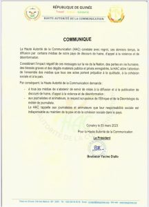La Haute Autorité de la Communication (HAC) déplore la diffusion par certains médias de discours de haine, d’appel à la violence et de désinformation. Face à cette situation, la HAC invite les journalistes à ne pas relayer ces gens de messages. Communiqué !