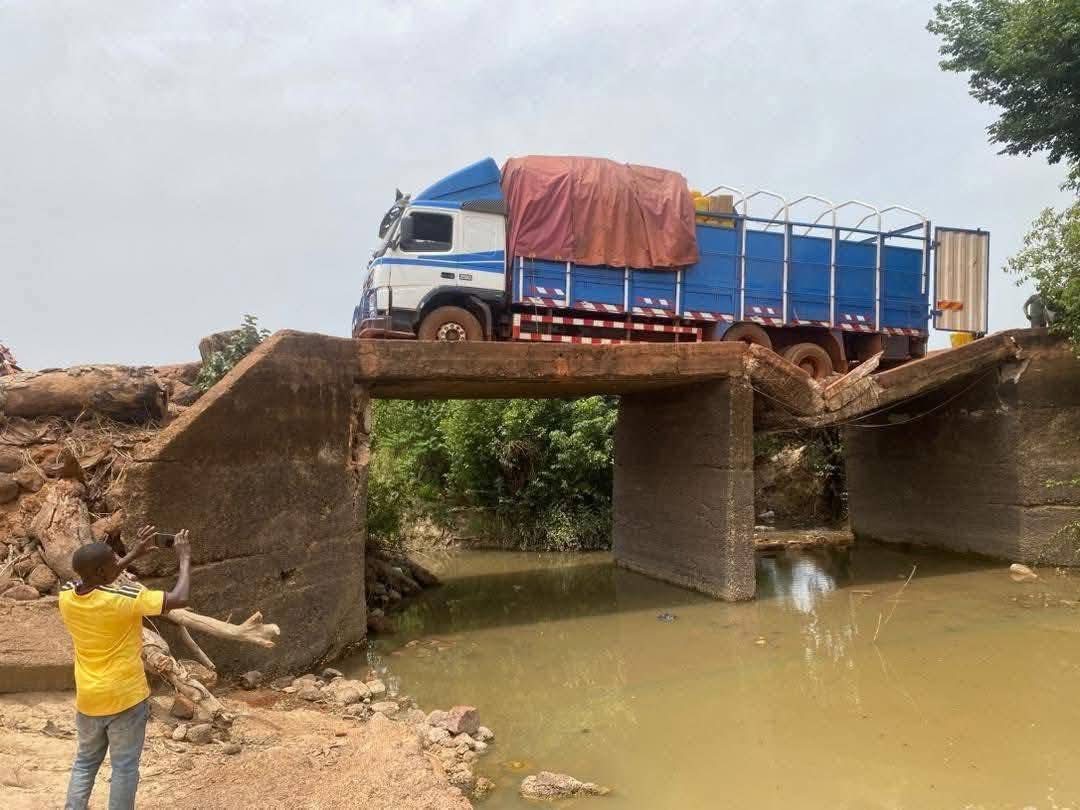 Un pont s’est effondré à Koléni, dans la préfecture de Mandiana, en Haute-Guinée, provoquant une vive inquiétude parmi les populations locales. Selon des témoins, un camion tentait de traverser lorsque l’ouvrage s’est brusquement affiché, laissant le véhicule suspendu sur la rivière.