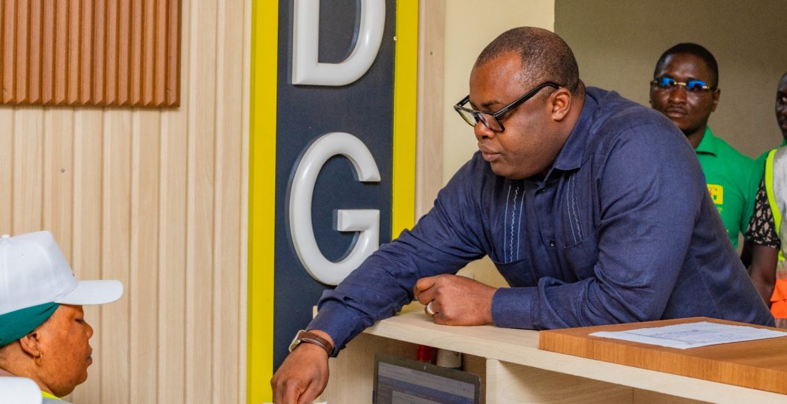 Conakry 18 aout 2023 – Dr Bernard Goumou, Premier ministre, Chef du Gouvernement pose un geste symbolique. Sous une fine pluie, il s’est personnellement rendu ce matin à l’agence EDG de Yataya-Foulamadina, dans la commune de Ratoma.