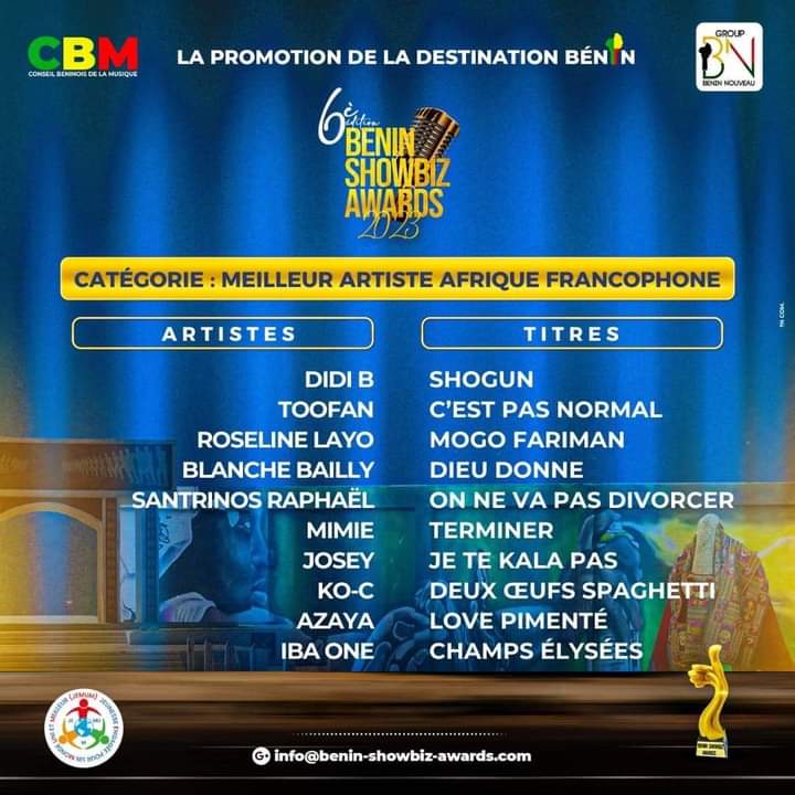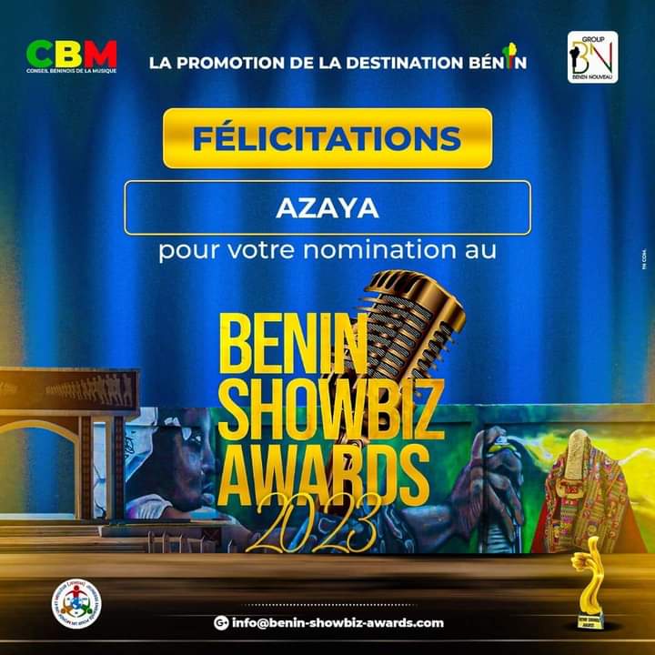 « Très heureux de vous annoncer ma nomination au Bénin Showbiz Awards dans la catégorie Meilleur artiste Afrique Francophone à travers le hit Love pimenté », a annoncé Azaya sur sa page Facebook.