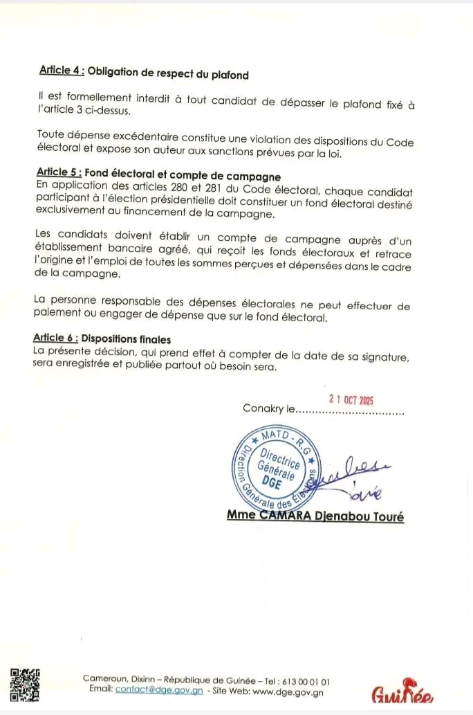 Présidentielle 2025 : la barre est fixée à 900 millions GNF pour les candidats