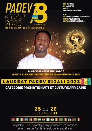Le concepteur du slogans « le laissez-passer de la musique guinéenne », est annoncé à la cérémonie de remise des prix qui se tiendra à Kigali, au Rwanda. Sa victoire au prix PADEV témoigne de la reconnaissance de son talent et de son engagement exceptionnel dans la promotion de l’art et de la culture africaine.