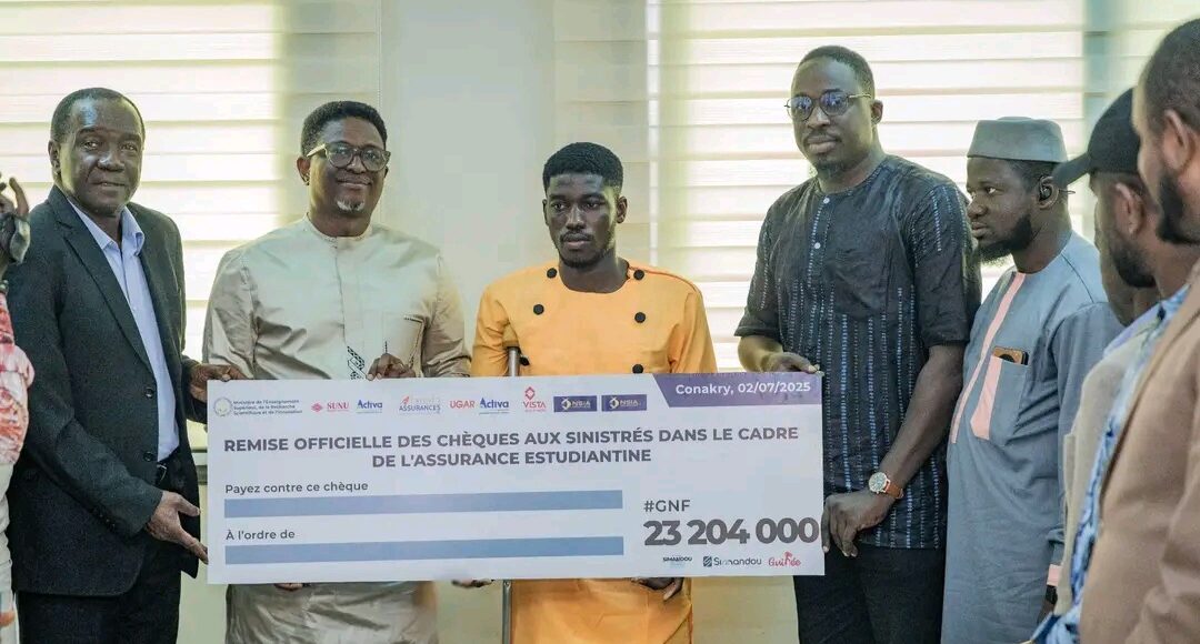 Une avancée historique dans la protection sociale universitaire a été franchie en République de Guinée. Ce mercredi, le ministre de l’Enseignement Supérieur, de la Recherche Scientifique et de l’Innovation, Alpha Bacar Barry, a procédé à la remise solennelle de chèques d’indemnisation à des étudiants victimes d’accidents graves, dans le cadre de la mise en œuvre du programme pilote d’assurance estudiantine.